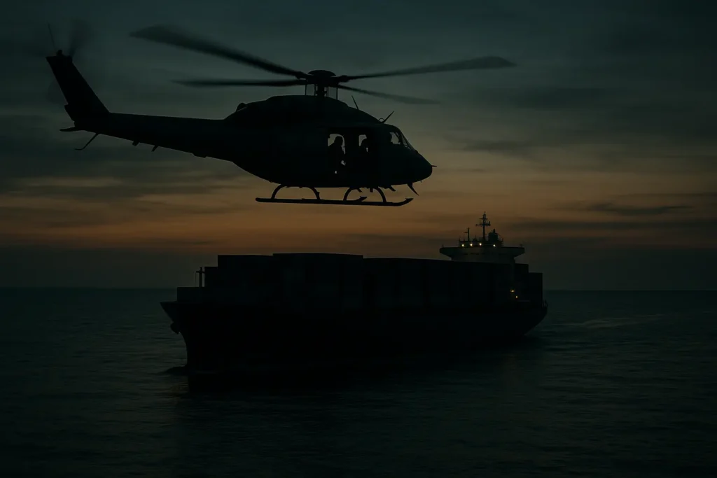 Panic erupted on the bridge. The helicopter wasn’t broadcasting any signal. It hovered dangerously close, circling the ship like a predator sizing up prey. Not military. Not coast guard. Not customs.
